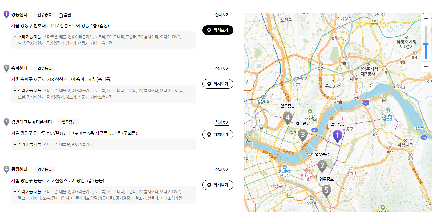 5. 삼성전자 휴대폰 서비스센터 위치 안내