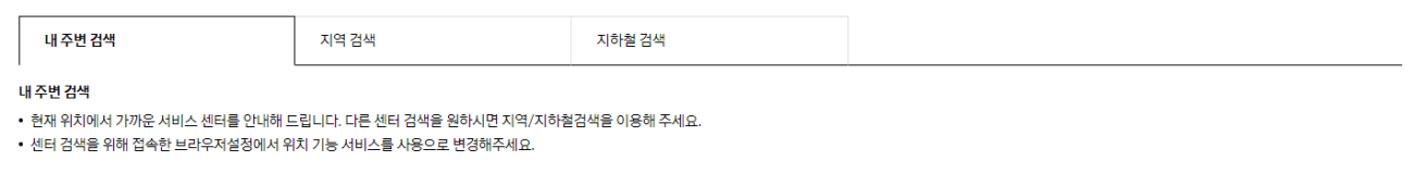 - 서비스센터 찾기: 상단 메뉴에서 "센터 찾기"를 클릭하고 위치를 검색합니다.