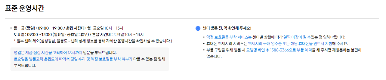 2. 삼성전자 휴대폰 서비스센터 운영시간 안내