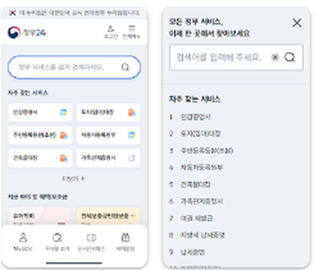 정부24 앱은 웹사이트와 동일한 서비스를 모바일 환경에 최적화해 제공합니다.