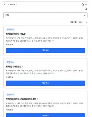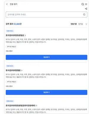 - 토지·건축: 토지대장, 건축물대장, 개별공시지가 조회.