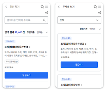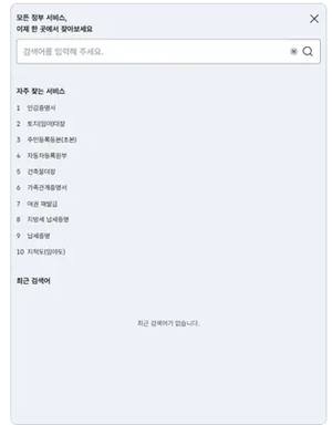 - 검색: 민원명(예: 주민등록등본, 초본, 가족관계증명서, 토지대장) 또는 상황 키워드(전입, 확정일자, 개별공시지가)를 입력합니다.