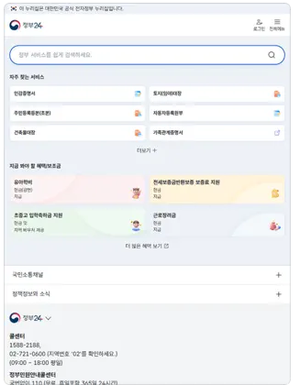 상담이 필요한 경우 정부24 고객센터 1600-1012로 문의합니다. 앱 사용 중 기술 문제