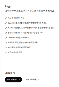 월 구독료는 지역에 따라 다르지만, 일반적으로 20달러 정도입니다. 업무나 학습 목적으로 ChatGPT를 자주 사용하는 사용자들에게는 유료 버전이 더 적합할 수 있습니다.