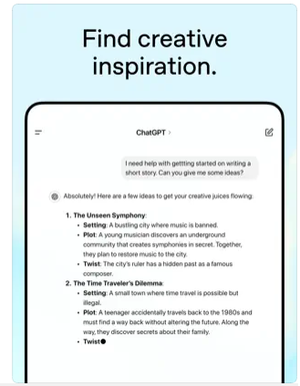 - 영감 찾기 블로그 글쓰기, 창의적인 프로젝트, 또는 새로운 아이디어가 필요할 때 챗GPT가 다양한 아이디어를 제시해 줍니다. 이는 특히 콘텐츠 제작자나 학생들에게 유용합니다.