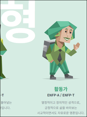 - 활동가 (ENFP): 열정적이고 활발하게 살아가며, 긍정적인 영향을 주고받기를 원하는 타입입니다. 사회적 관계를 중시하며 다른 사람들과 협력하는 데 탁월합니다.