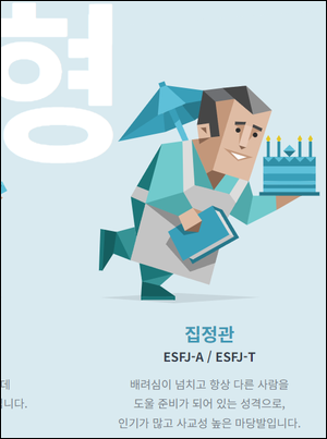 - 집정관 (ESFJ): 배려심이 넘치며 타인을 서포트하는 것에 즐거움을 느끼고자 합니다. 사람들에게 행복과 만족감을 주는 존재가 되고자 합니다.